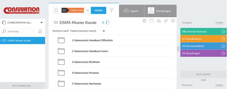 Natürlich sind die Aufgaben, Kompetenzen und Verantwortungen in dem DSMS ebenfalls modelliert und werden im Projekt den zuständigen Persoen zugeordnet.